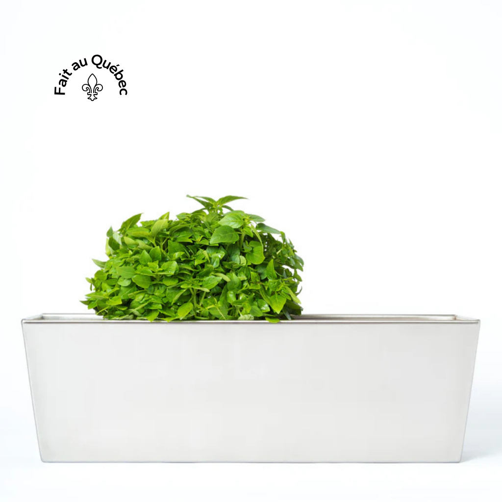 Conçue en acier inoxydable, cette jardinière de 18″ × 5″ (45 cm × 13 cm) s’installe facilement au mur grâce à son système d’ancrage intégré. Les nécessaires de fixation sont inclus.