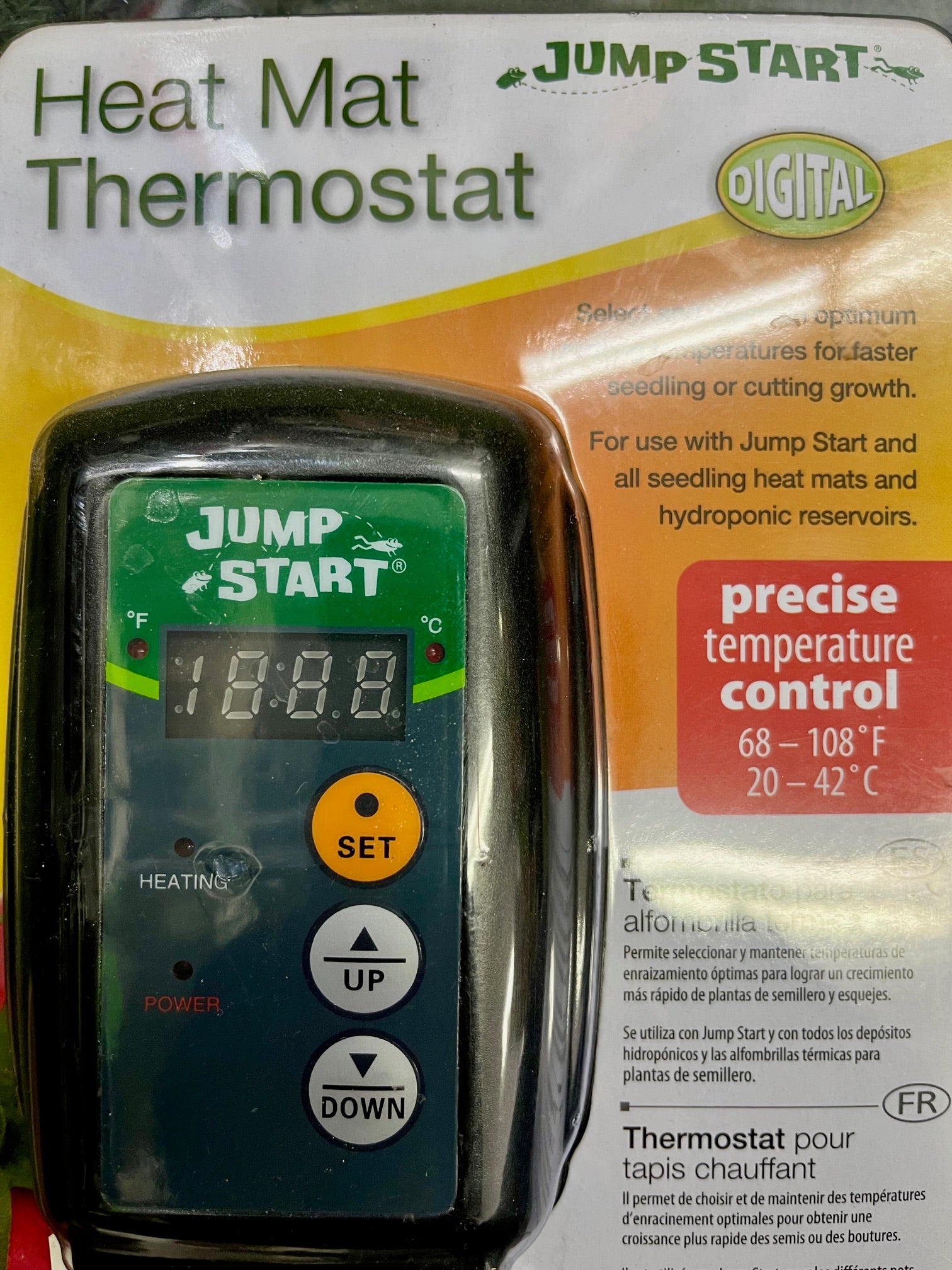 Thermostat digital OPTIONNEL pour tapis thermique contrôlant la température entre 20 et 42 degrés Celsius. Inclus un cordon de sonde de 6 pieds.