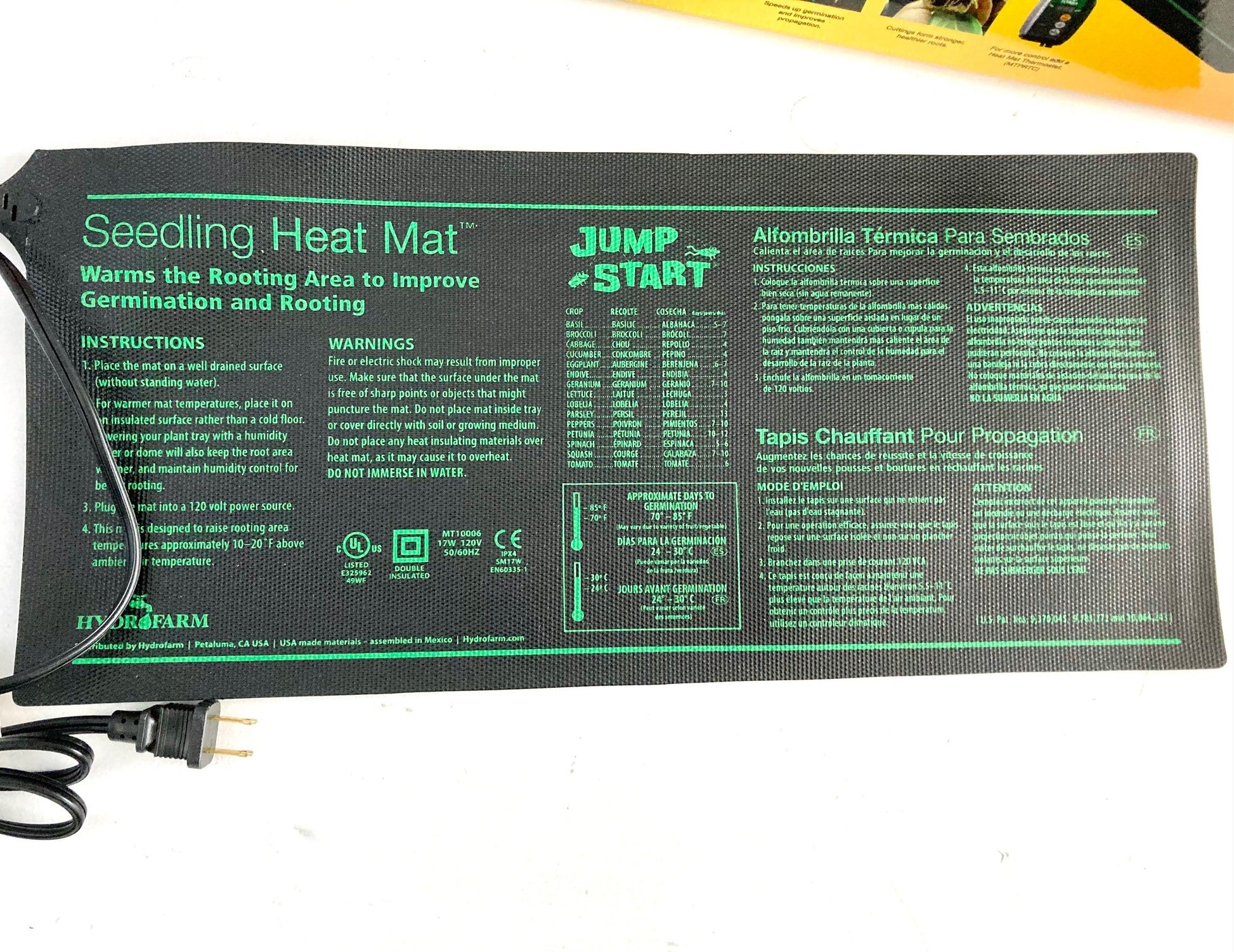 Tapis thermique de 9” x 19.5” (23 x 50 cm) correspondant à la grandeur d’un plateau de semis standard, Accélère la germination et la croissance. Chauffe la partie des racines 5,5 à 11 degrés Celsius au-dessus de la température ambiante.